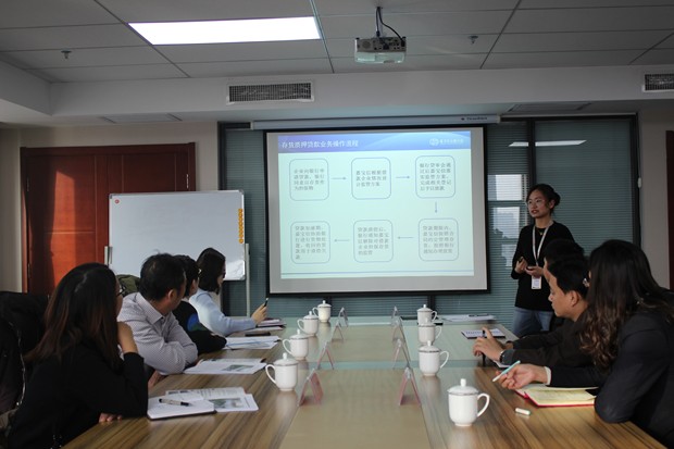 公司領導向考察團介紹存貨質(zhì)押有關情況